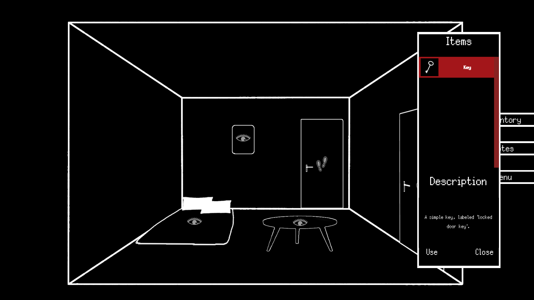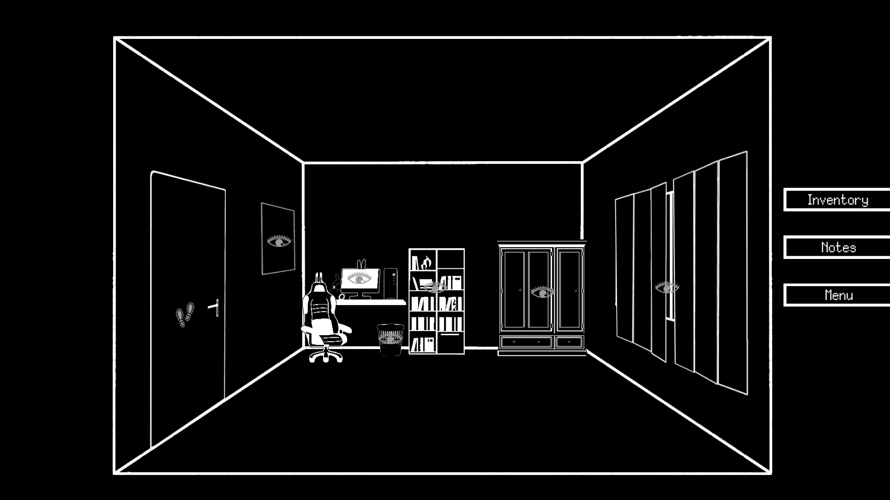 made by me (maple) trying to learn how point and click work, how to draw 1bit backgrounds and for hollow jam.